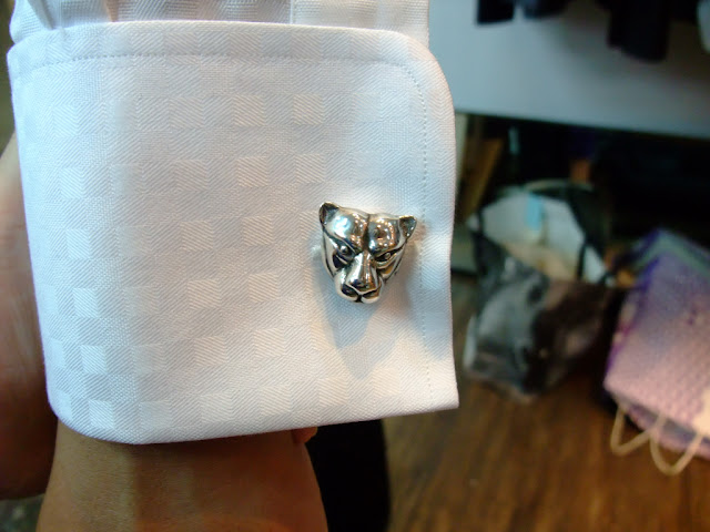 | 借用老闆的豹頭袖扣,散發出微微的雅痞風格 |