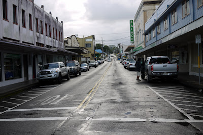 好啦~ 我們中午稍作休息之後,下午就前往Hilo 市區逛逛這個古色古香的小鎮啦! 其實第二天的標題下的是有點嚴重了~ Hilo 真的不是恐怖小鎮啦! 它充滿著美式舊建築的風格,有許多還有登記是歷史建築呢! 走在Hilo市區的街道,好像進入了電影場景一般~