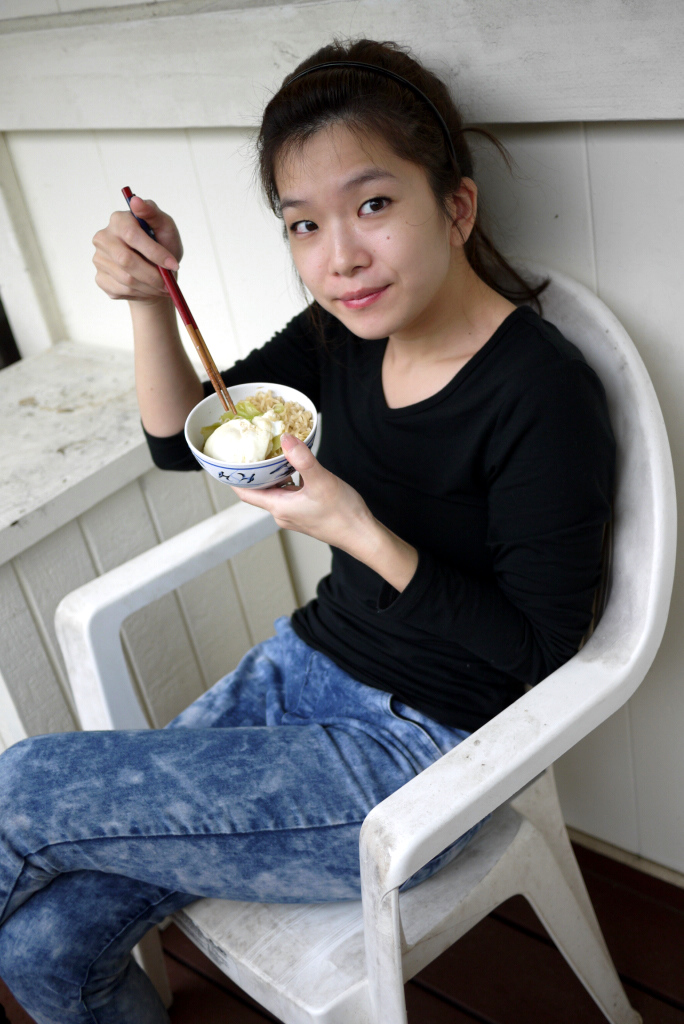 | 桌上的雞蛋,高麗菜,都是民宿老闆每天早上放到冰箱裡的喔! |